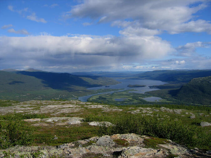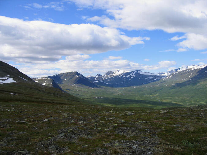 Behagligt myggfritt när man kommit upp,och sen är det lättvandrad fjällhed med superb utsikt över bergen,Pårte,Luottolako,Tjuolta och långt bort.