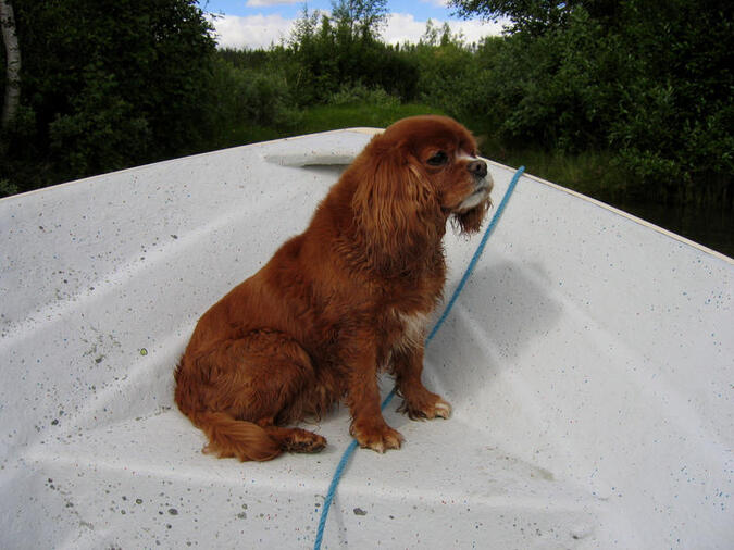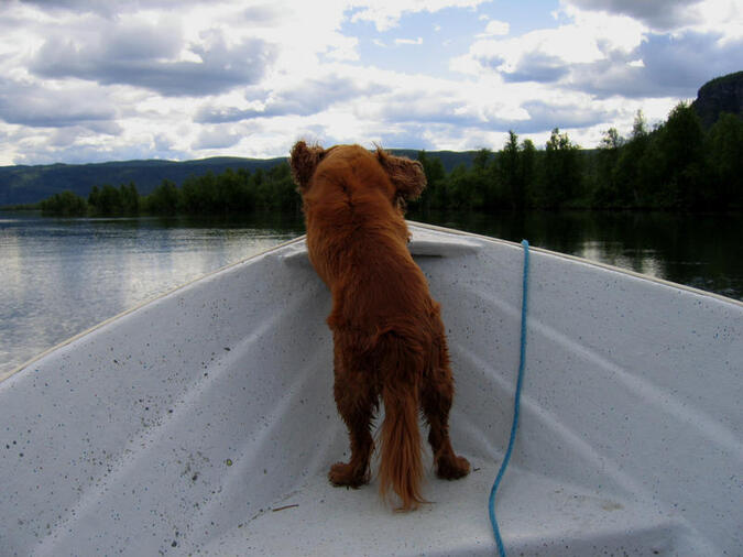 I sin favoritposition med vinden fladdrande i öronen.
