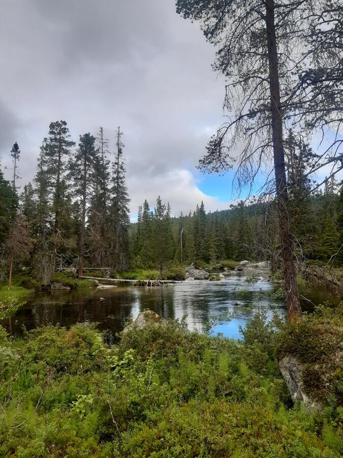Vägen gick mot Hällsjön och vidare mot Siljanskojan för att därifrån ensamvandra uppstöms Storån som utgör gräns mot Töfsingdalen Nationalpark för några dagars Öringfiske och vildmarksliv.