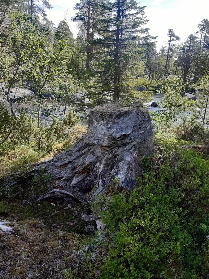 Ovanligt att se så många träd som fått leva hela sitt liv och dö stående och sedan får vara kvar som här.
