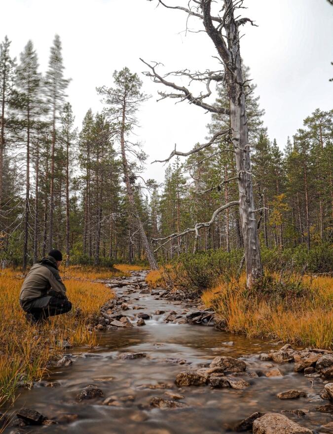 Paus vid vattendrag nära Lankojärvi.