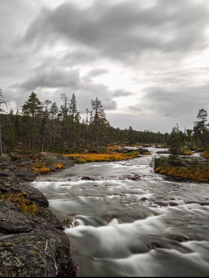 Redan 4:30 på fredags morgonen vaknar jag och känner att jag sovit en helt okej nattsömn. Efter morgongröten och kaffet var druckit så packar jag ihop grejorna och jag är startklar redan vid 06:00. Det duggregnar ute och är väldigt rått. Just denna sträcka som jag gick från Siikaoupaja till Sarvijoki ödestuga var enligt mig ganska ointressant att vandra. I efterhand så skulle man kanske kunnat lagt om rutten och genat, men en annan orsak varför jag tyckte att denna del av vandringen var mindre charmig var nog också troligtvis för att det regnade i stort sett hela sträckan. När jag väl var framme i Sarvijoki runt 14 tiden så var jag först på plats vid ödestugan men det tog inte många minuter innan jag såg två stycken figurer som dök upp en bit från stugan. Vi var alla tre mer eller mindre genomblöta och ville in och värma oss och torka våra kläder i stugan. Under resten av eftermiddagen så satt jag och bytte lite information med dessa två herremän från Helsingfors som under dagens gång hade sett bland annat Pirunporrti och Paratiisikuru och detta var deras tredje år på raken i denna nationalpark. När klockan började närma sig middagstid så grillade jag korv samt gjorde potatismos vilket smakade underbart efter en dag som denna, sedan blev det att släcka törsten med en god Lappländsk öl. Just denna stuga i Sarvijooki har blivit renoverad under sommarens gång 2021 och var väldigt fräsch och fint i skick. När klockan började närma sig 18-19 tiden på kvällen så kom även några andra genomblöta vandrare som ville värma sig. Vi som kom tidigare på dagen så valde då att lämna rum åt dom andra när vi redan hade torkat vårat kläder och beslöt att sova i våra tält.