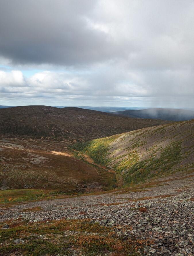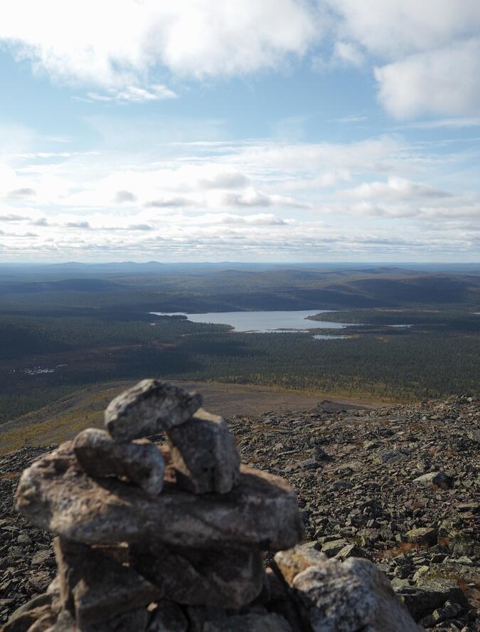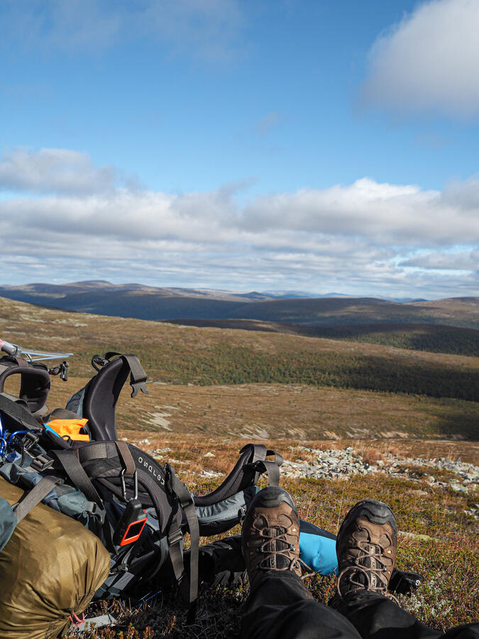 När jag vaknade denna morgon så var det förmodligen kallaste natten under denna tur men efter att fått i mig morgonkaffet och gröten så blev jag genast varmare i kroppen. Efter allt var packat igen så hämtade jag skorna från stugan och dom var äntligen torra! Dagens etapp började med riktning mot Lumikuru, och under denna dag så hade jag betydligt bättre väder med sol under större delar av dagen och morgonen var faktiskt vindstilla. Ska man ta sig uppför Lumikuru så ska man ta och fundera över det ett par gånger. Stigningen är väldigt brant uppför Lumikuru och min tunga packning gjorde inte saken lättare även fast jag hade vid det här laget ätit upp en stor del av maten. När jag hade klarat av bestigningen av Lumikuru så började söka mig mot berget Lumipää för att sedan passera Riitelmäpäät. Sista biten uppför Sokosti var väldigt stenig i den riktning som jag kom ifrån. Uppe på Sokosti så spenderade jag en bra stund för att beskåda utsikten över nationalparken med kikaren som jag hade med. När jag började känna mig redo för att ta mig neråt så styrde jag riktning mot sjön Luirojärvi där jag hade bokat bastu för kvällen. Den sista biten innan jag var framme för kvällen var krävande eftersom denna dagsetapp hade tagit på mina krafter rejält. När jag var nere vid sjön Luirojärvi satte jag upp tältet direkt och började göra middag omgående, Jag inte hade ätit något sedan jag besteg Lumikuru tidigt på förmiddagen. Efter att jag fått i mig mat så började jag göra mig klar för att bada bastu vilket jag hade sett fram emot. Bastu badandet så var både otroligt skönt för kropp och själ efter några dagars vandring och jag hade också med mig två öl att avnjuta under kvällen. Efter det så sov jag som en kung denna natt.