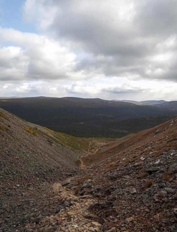 Leden ner från Pirunportti till Muorravaarakka ödestuga.
