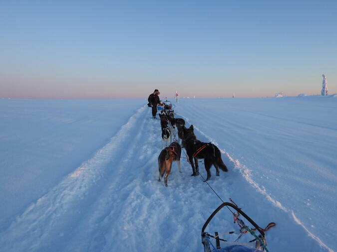 Här har vi stannat för att ge hundarna ett litet mellanmål. Då dom springer långt behöver dom lite vätska och mat liksom vi.