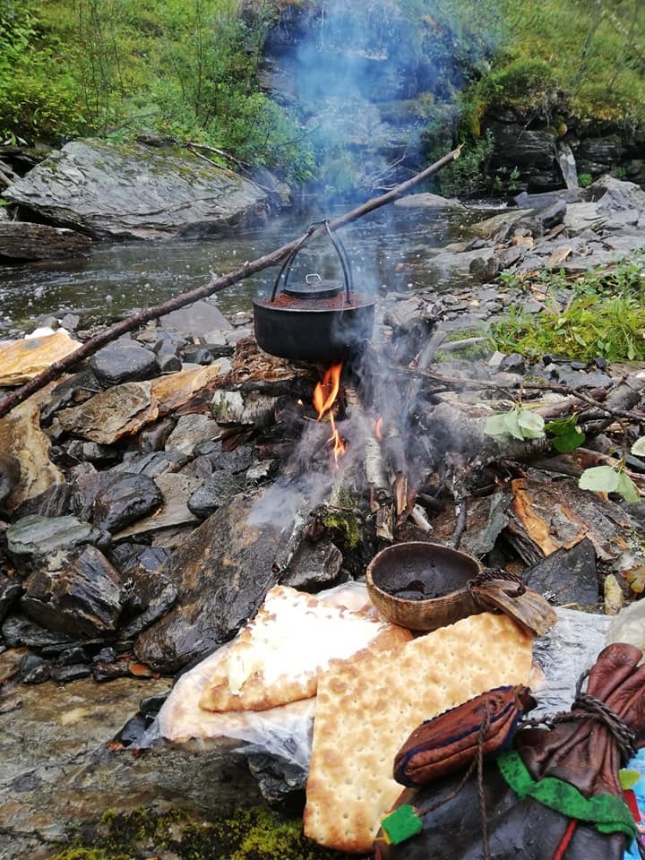 Sommaren var ju så torr. Jag led med alla bönder och mina tankar gick till naturen. Längtade efter att få koka kaffe ute. Nästan hela sommaren fick det vara då jag tyckte det var för torrt för att elda. Vi hade eldningsförbud och skogsbrand vill man ju inte orsaka. Men så blöttes marken upp. Just den här dagen föll ett duggregn hela dagen. Äntligen blev det kaffe kok utomhus! Som jag hade längtat.Att få koka sig kaffe över en liten eld är det bästa nöjet. Faktiskt så är det en naturlig fritids sysselsättning i våra marker. Att gå ut och koka sig kaffe! Här har jag gått upp mot fjällkanten ovanför Borgafjäll på jakt efter gula kantareller. Vilket det blev mindre av i år. Men en trevlig utedag med alla tillbehör.