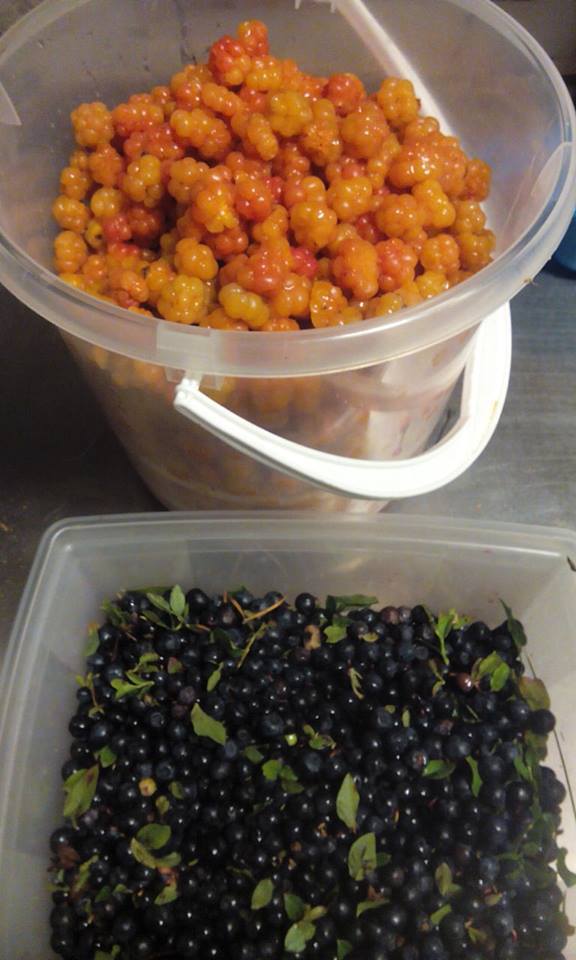 Det blev mindre bär i år än vanligt. Jag fick sträcka på benen för att få ihop några liter. Särskilt hjortron var det ont om. Som tur var hade jag sparat en del från året innan.