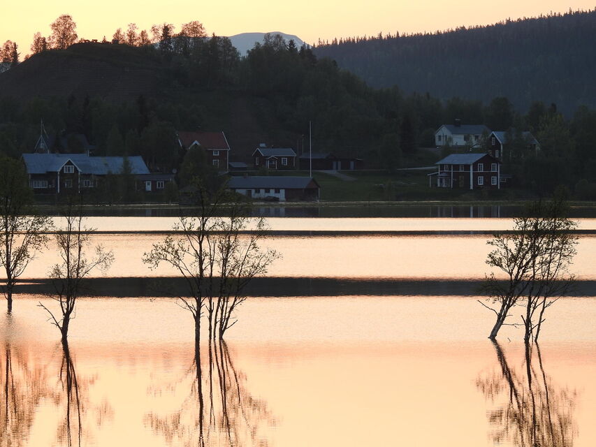 Till slut kom så vintern. Det gick trögt. Vi hade barmark länge. Fina isar verkar det bli i år. Kylan har hunnit göra sitt innan snön kom. Träningstur med hundspannet här. Nere i byn är det inte så mycket snö men uppe på lågfjälls platån har det nog blivit upp emot 60 cm! Så nu är det vinter. Äntligen. Nu snöar alla problem över.