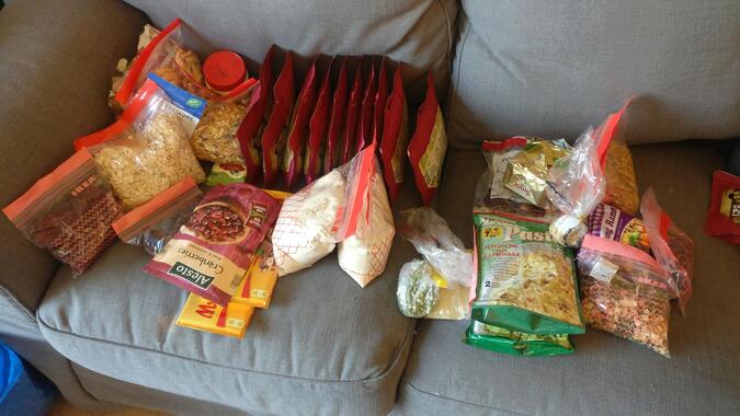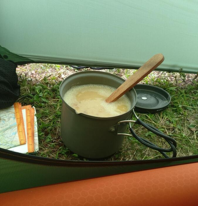 En erfarenhet jag även har lärt mig under åren är att jag vanligtvis äter för lite på när jag är ute, oberoende om jag tar en ensamtur eller vandrar med sällskap. Dels äter man inte allt man planerat att äta under en dag, blir till exempel ofta tre mål även om du planerat fyra, varför mycket mat kommer med hem igen samt att maten oftast är för näringsfattig. Det här var ett problem som jag var mig tvungen att lösa, för utan tillräcklig energi skulle jag inte komma särskilt långt. Hittills var den vanligaste maträtten som jag lagat med mina torkade ingredienser varit nudlar med varianter av torkat kött/fisk/kyckling och blandade grönsaker där ärtor oftast ingick i någon utsträckning. En helt ok maträtt men inte så kaloririk och inget du vill äta varje dag i två månader.