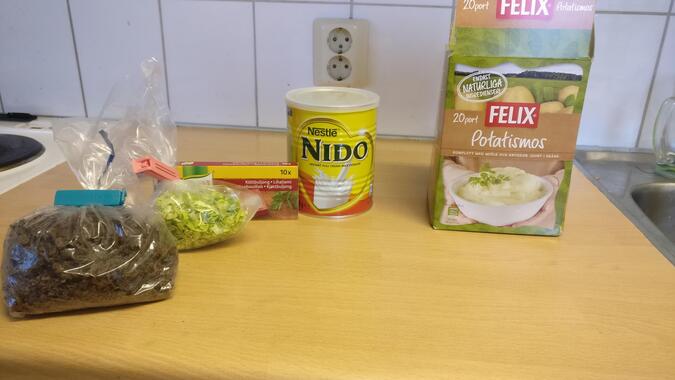 Jag hade vid det här laget även kommit över ett parti om ca 60 påsar frystorkat i fem smaker för en billig peng, med de som låg hemma sedan tidigare hade jag runt 65 påsar totalt. Jag funderade över att försöka köra frystorkat till lunch varje vandringsdag, dels för att det går snabbt och har förhållandevis bra med energi 600-700 kalorier. Visst finns det egna varianter som även kan vara snabba och fyllda med energi men enkelheten, latheten och en viss rädsla avgjorde valet. I en frystorkad påse är det trots allt någon annan som har tänkt över innehållet.