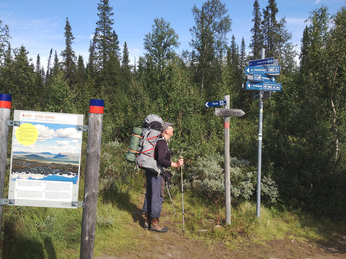 Vid avtaget från Kungsleden mot samevistet Boarek (Pårek) finns många skyltar. Det har blivit fler de senaste åren. Men stämmer verkligen alla avståndsangivelser? Jag ser inte övertygad ut.