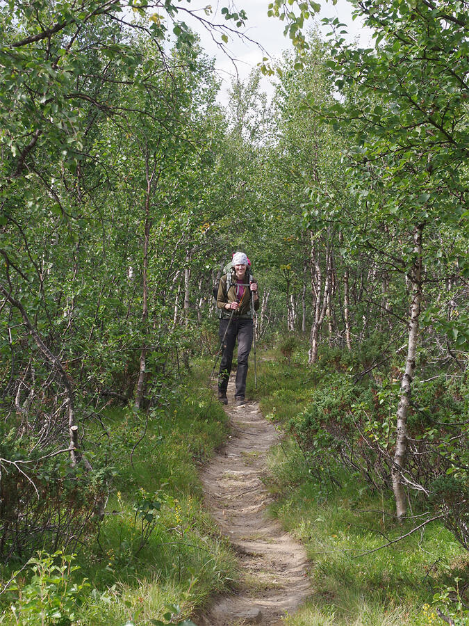 Diana på stigen mot Boarek. Björkskogen var verkligen vacker här.