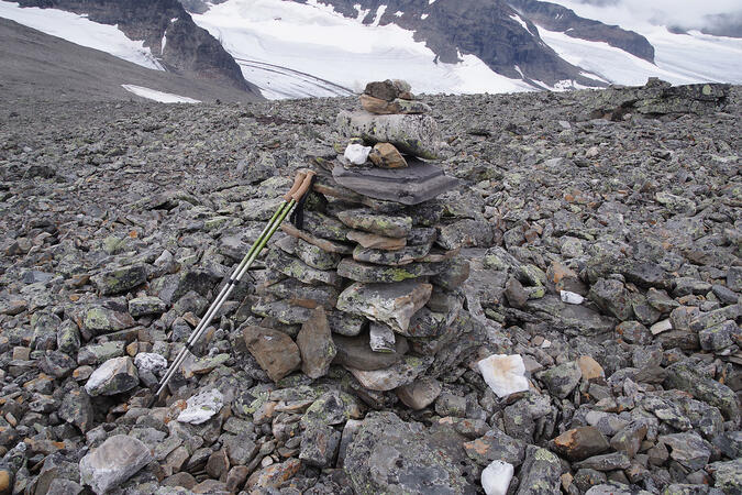 Jag gick fram till den rejäla rösningen, sannolikt byggd av Hamberg eller hans medarbetare. Den stod på ca 1630 meters höjd.
