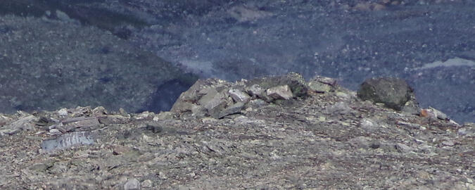 Medan jag satt där vid lunchplatsen kom två unga män vandrande från Bårddetjåhkkå och observatoriet (inte samma personer som jag mött tidigare). De hade sitt tält nere vid Lullihatjårros fot och hade tvärat över Bårddejiegŋas tunga för att komma upp till sadelpunkten vid röset. Nu var de på återfärd, ungefär samma väg ner. De var villiga att göra en liten avstickare till Hambergs 1530-hylla och fotografera det som fanns där. Vilket sammanträffande! De var dessutom fågelintresserade och hade utmärkt kamerautrustning. Bättre assistans kunde jag inte få. Jag gav dem mina kontaktuppgifter och de lovade höra av sig efter sommaren.