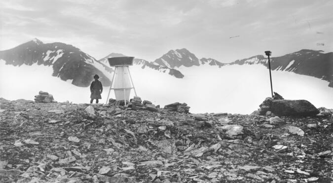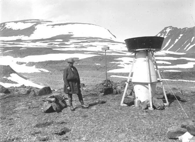 Nederbördsmätaren vid 1050 m ö.h. Foto: Axel Hamberg 1899.