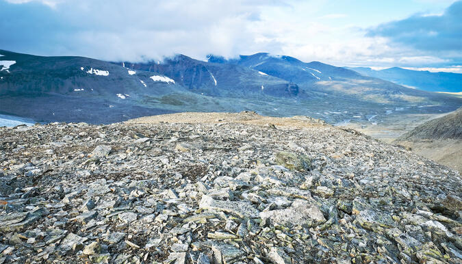 Platån som jag nu befann mig på var en fin plats, på något sätt kärvt inbjudande. Och en ganska lättvandrad förbindelse mellan Boarektjåhkkå och Bårddetjåhkkå. Jag greps av en känsla att befinna mig på ett av Sareks "tak", helt avskild från turiststråket på Pegelleden upp till observatoriet. Men den känslan visade sig vara bedräglig. Det dröjde nämligen inte många minuter förrän två män kom emot mig från närmaste fjälltopp. De hade gått ryggen över Boarektjåhkkå och var nu på väg till observatoriet. Vi småpratade en stund innan de försvann västerut, uppför sluttningen. Så var det med den avskildheten.