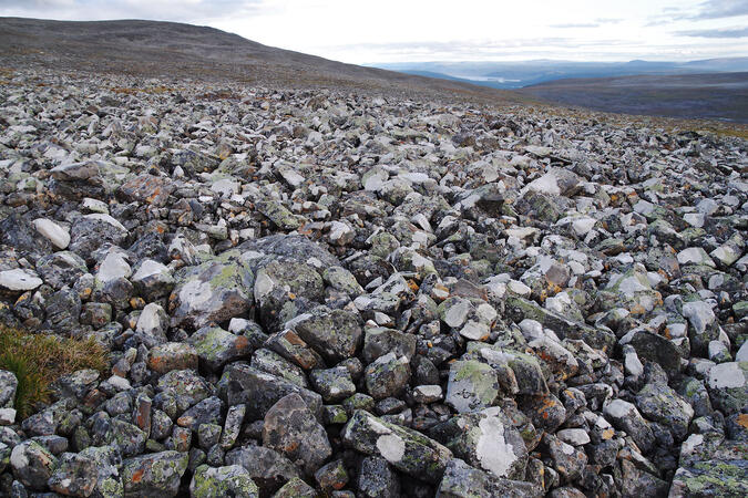 Ett mycket stort fält med lavbevuxna stenar låg också i min väg. Det var jämnt och ojämnt på samma gång. Faktiskt en ovanligt vacker blockterräng även om det inte var någon önskedröm att vandra på när man fort ville hem till tältet.