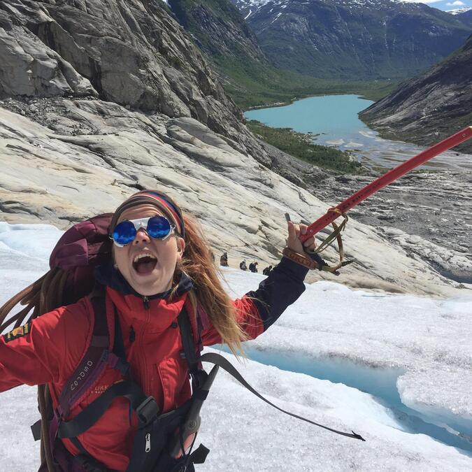Tiden bara flyger fram här i Norge, och jag känner mig så otroligt lycklig att min första månad är avklarad. Varje dag är ett äventyr & en erfarenhet rikare. Just nu sitter jag i vår otroligt färgglada 70-tals soffa i vardagsrummet i vårt guidehus som det ser ut som tiden har stått stilla i, sen just 70-talet som ligger i bortre änden av Jostedalen. Det är ett otroligt charmigt hus på en kulle med utsikt över dalen och fjälltopparna som omger oss är fortfarande täckta av snö. Just nu vill jag inte vara någon annanstans än här. Trots att ljuset ibland gör det svårt att sova och när gräset på stigen ner mot vägen är genomblött, vårt vatten eller lampor strejkar och vägen upp efter jobbet suger i benen så är det här helt underbart. Att få vakna varje dag, göra mig redo för dagens tur och ta med mig gäster ut i kajaken, för att sedan gå upp mot glaciären och vandra runt och visa dem alla coola formationer och skiftningar är drömlikt bra att kunna kalla för jobb. Jag får göra det jag älskar och ta med människor ut för att visa dem en annorlunda upplevelse, det ger mig så mycket glädje och personlig utveckling i de situationer jag ställs inför eftersom det kräver mycket av mig. Vilket är en av anledningarna att jag vill vara guide. Vilken dag som helst kan vi påbörja våra turer på den tredje glaciären vi gör turer till och jag ser verkligen fram emot att se den och skillnaderna mot de två vi redan befinner oss på.