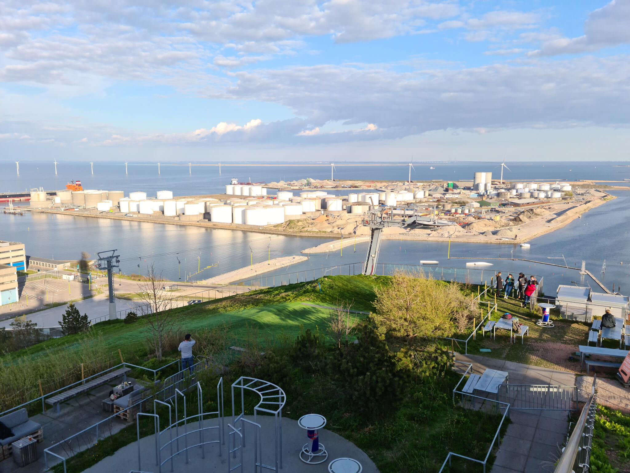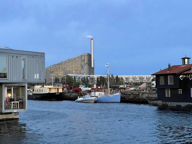 Den vita röken härrör från Köpenhamns nya avfallsförbränningsanläggning, ARC, Amager Resource Center.
