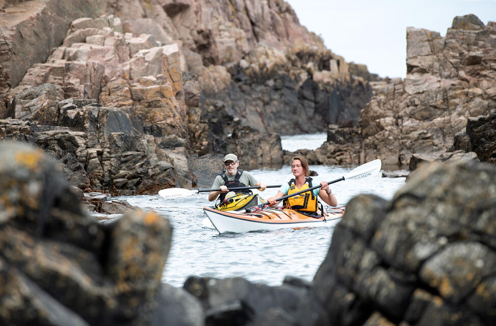 Senare passerar vi Lauters Hamn och fortsätter längs Fårös klippiga nordvästkust genom naturreservatet Digerhuvud. Måsarna skriker ovanför våra huvuden och doften av tång blandas med doften av de soliga blomsterängarna som vi går igenom när det blir för ruggigt på stranden. Framför oss står hasselnötsfärgade träskjul bredvid små vita stenhus och en fisklukt breder ut sig och avslöjar att vi befinner oss vid Helgumannens fiskeläge. Sillfisket var förr en viktig inkomstkälla för öborna, och bodarna användes av bönderna som bodde vid kusten under fiskesäsongen. Idag används de bara som fritidshus av vissa öbor. Vi tar en kort paus, sjunker ner på marken framför en gammal träpråm och blickar ut över havet.