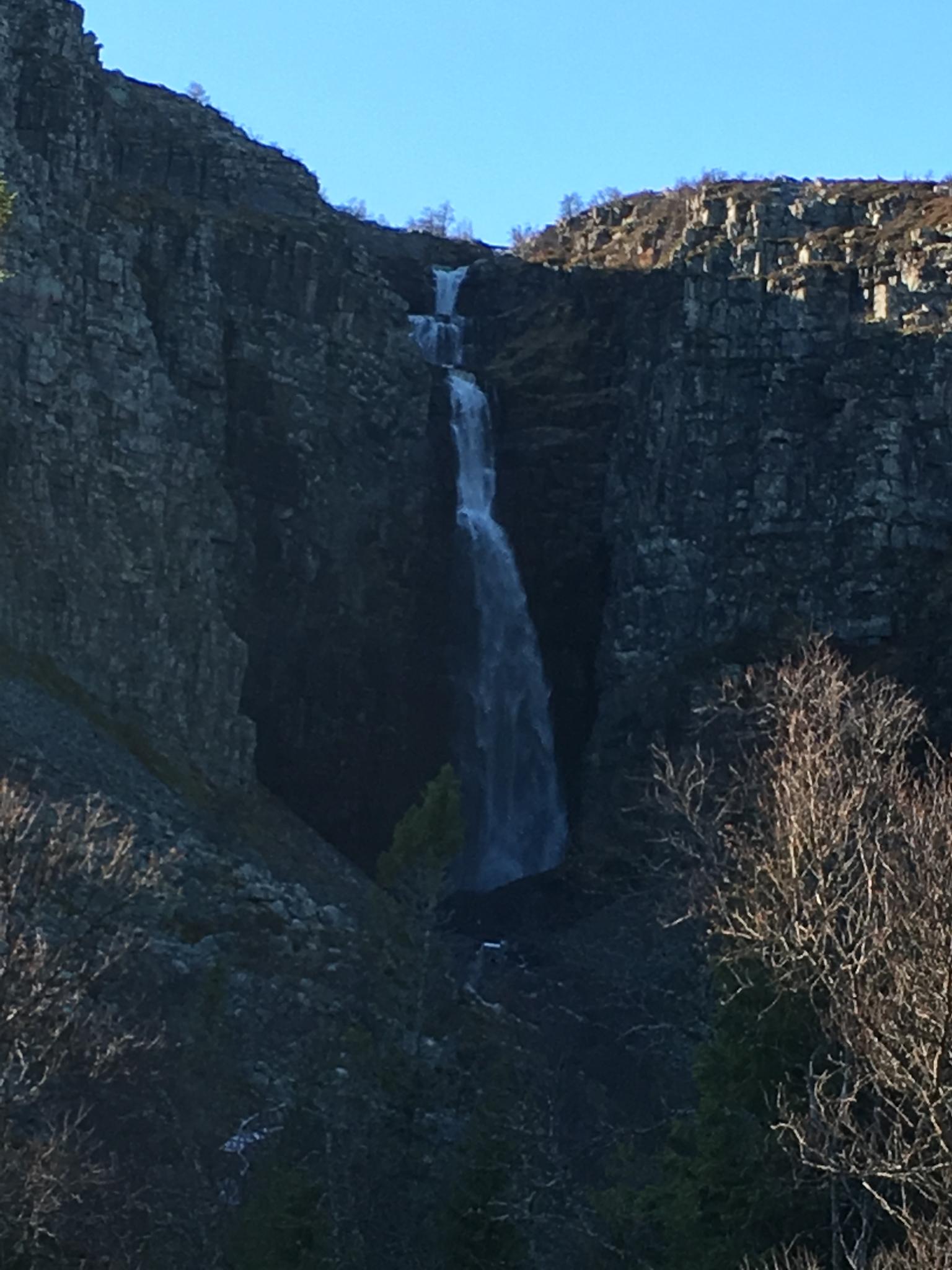I god fart gav vi oss av men valde att svänga uppför branten istället för ner mot fallet vid rastvindskyddet. Njupeskär hade vi båda sett förut och lockade inget vidare just nu. Hellre vidderna där uppe! Så ett kort på maximal zoom fick räcka innan vi klättrade vidare.