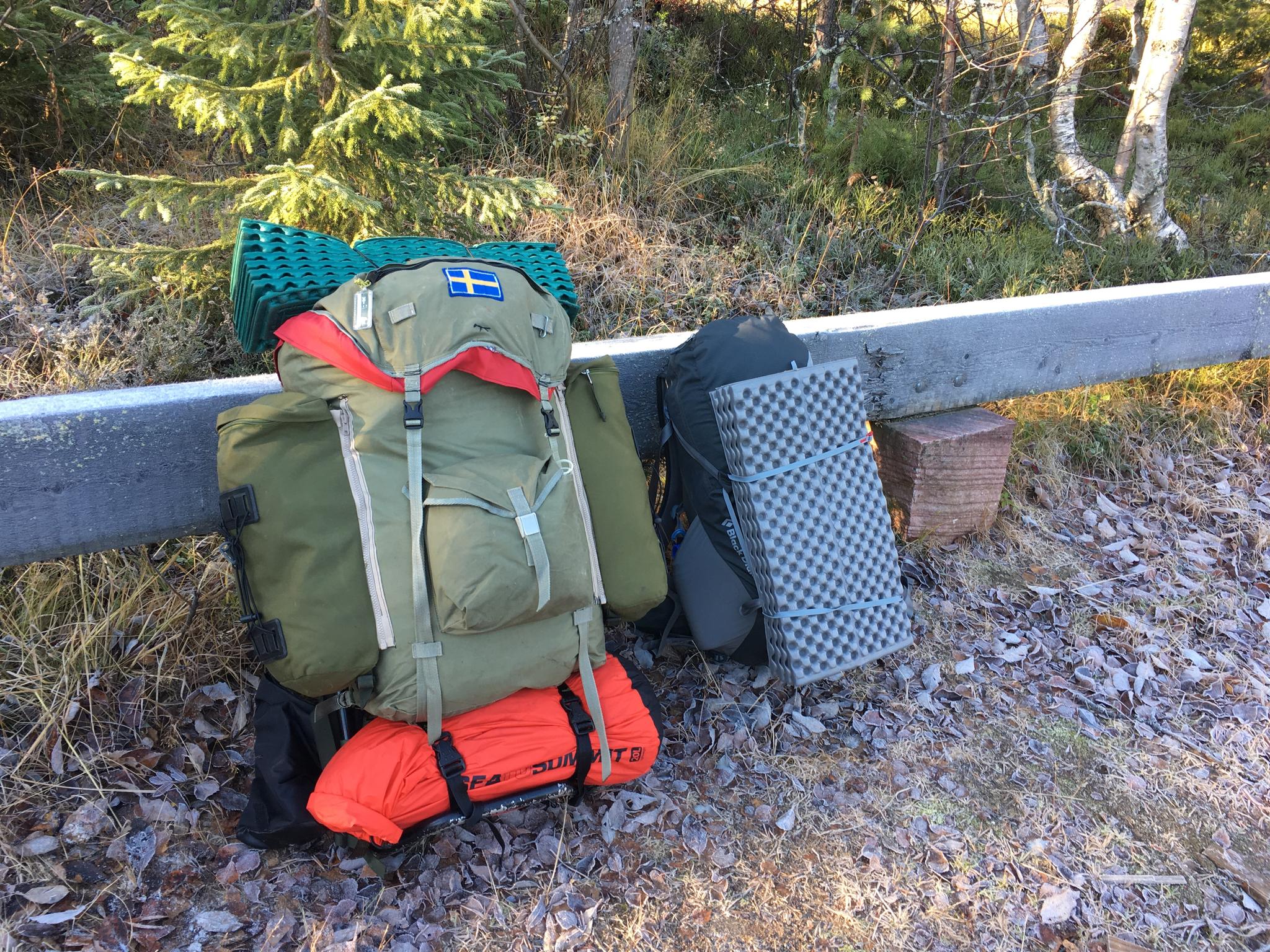 Det som hindrade J från att hänga på sommarens långtur i Lapplandsfjällen var lite krångel med en axel. Och eftersom hon fortfarande var i rehabfasen så fick det bli stora ryggan för mig. Antar att det hamnade på runt 20kg i början. Helt ok vikt rent bärmässigt. Helt ok med tanke på godsakerna som bars. Fast vi... öhum, jag, glömde kakorna. Nåja. Det lär aldrig hända igen!