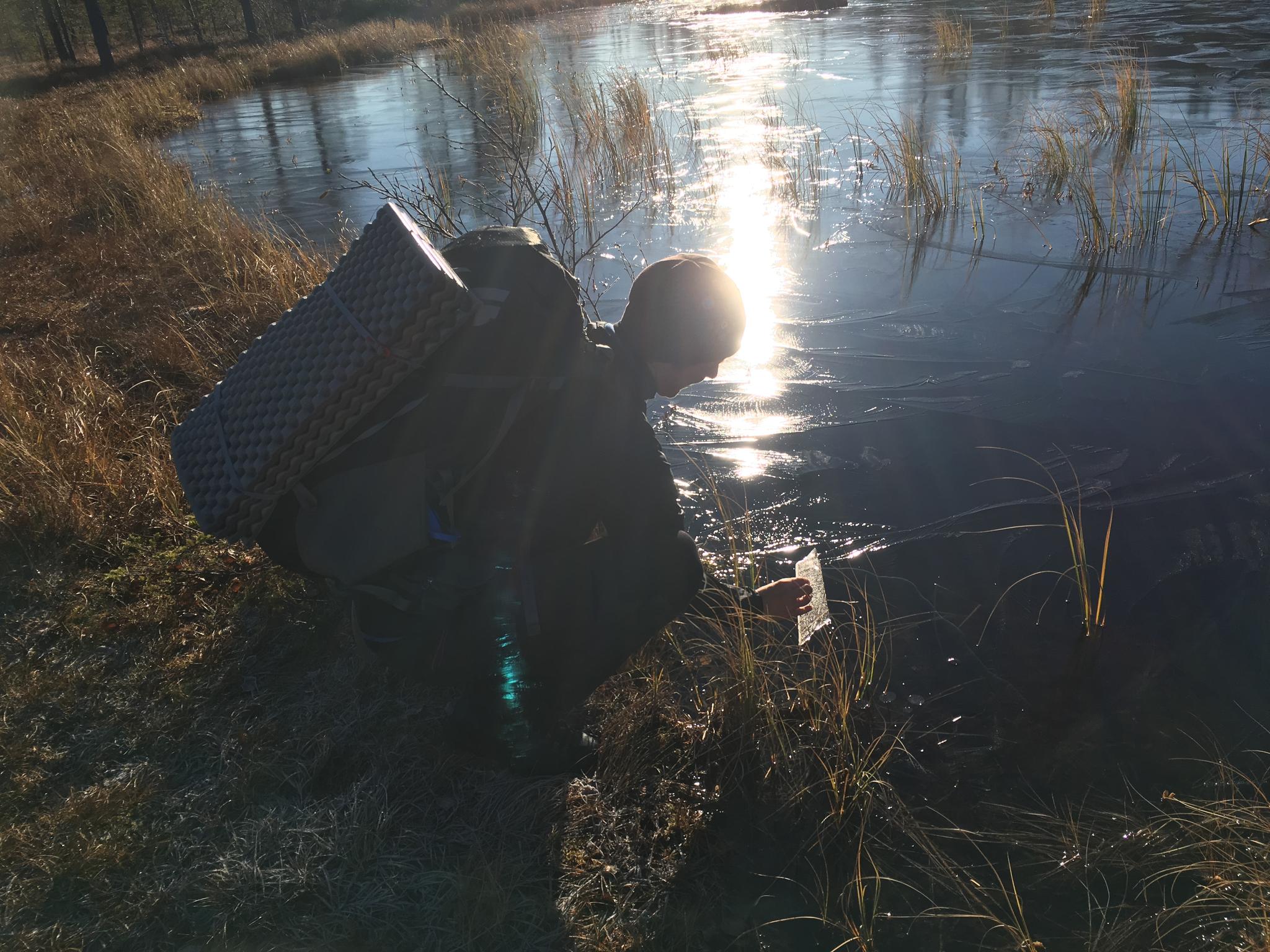 Trots en ganska kall och fokuserad kompassmarsch kom vi fram till det som skulle fungera som uppfång så småningom: bäcken Storkällan strax söder om Göljåstugan.