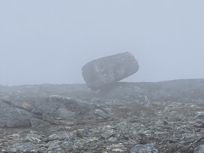 Noajdevágge var också rätt lätt att gå och strax efter lunch steg jag upp över kanten in i solskenet där uppe i Det förlovade landet. Det var väldigt mycket sten i den här delen av Paradiset. Typ bara sten. Men lättvandrad sådan och jag gick NV ut upp mot lilla sjön S om Nåite. Då drog dimman in.