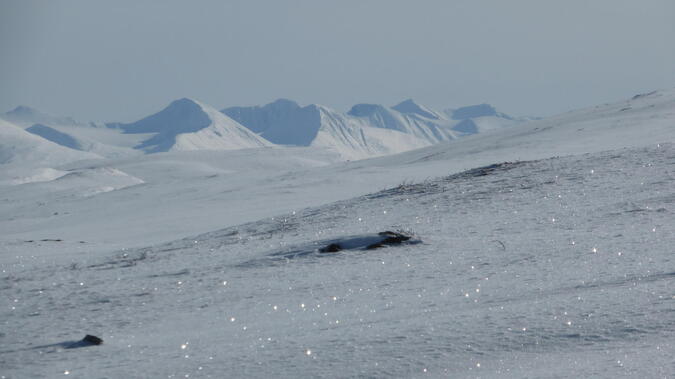 All gnistrande pudersnö var som bortblåst och ersatt av hårda vindbackade snövallar. Pulkorna var på morgonen täckta av hårdpackad snö och för att fram min pulkas skakel behövde jag gräva ner till 50 cm i den hårda snön.