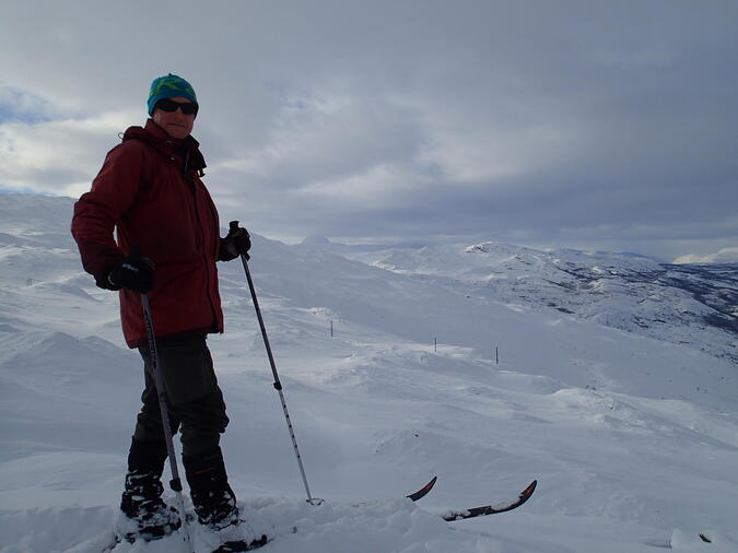 På väg upp till vattendelaren så vi också den nerfart vi hade planerat från Blåmannsisen och den såg ok att skida ner på, men vi konstaterade att den får vi skida på en annan gång.