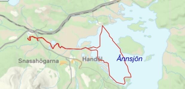 Det var tungt att spåra på sjön så det tog lång tid och var dålig sikt. Vi lunchade vid en sten, där det drevade en del. Jag grävde sittplatser och någon snömur som lä för att fin sittplatser i lä, men det drevade i alla fall.