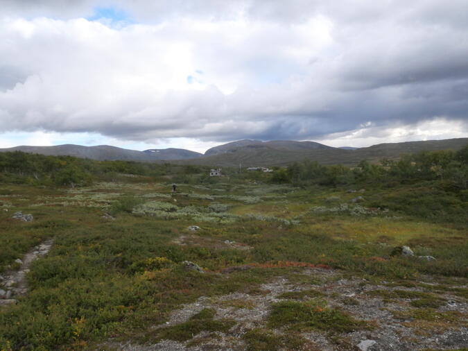 Det var ett kärt återseende av platsen där jag tältade 2017. Men nu var målet för dagen att först träffa Johan vid Vålåstugorna och sedan gå upp mellan topparna 1188 och 1247, Gruvsmällen, för att tälta vid Smällhögarna.