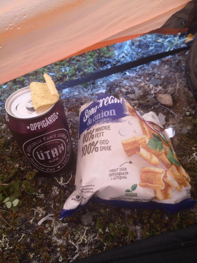 Klockan var runt 17. Det var kul att träffa Johan. Jag förklarade att jag inte skulle orka att gå upp till Smällhögarna, och vi bestämde att vi går vidare en bit, mot Gåsen. Bara en liten bit för att sätta upp tälten.