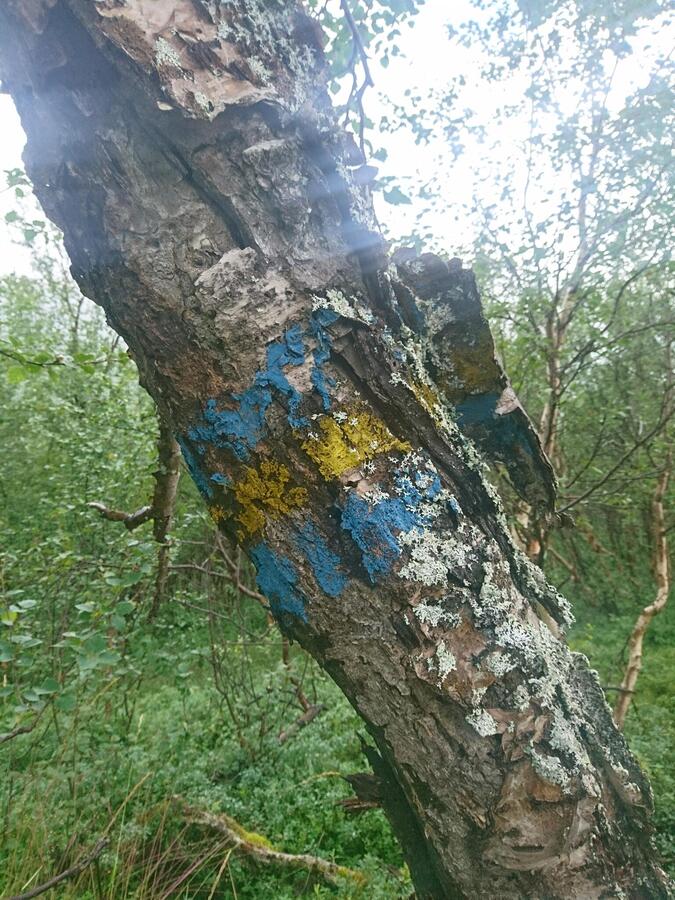 Markeringarna var blå, gul, blå. Vilken led hade haft den markeringen? Var det till de gamla Akkastugorna?