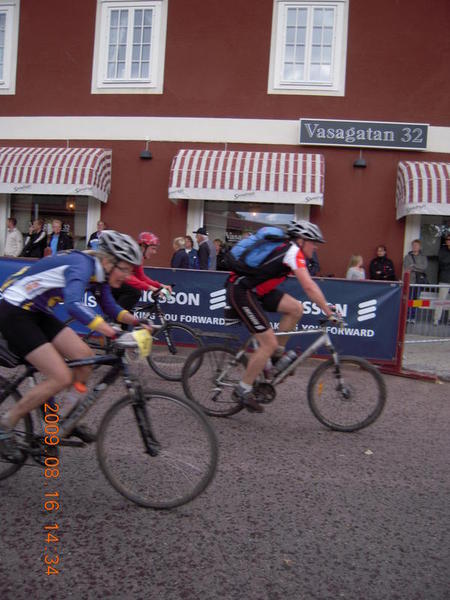 Det gick bra här också! Lite jobbigare än jag räknat med,inte tekniskt svårt men blött och lerigt, varje gång man tog en slurk ur drickaflaskan fick man sej ett mineraltillskott... Banan följer delvis vasaloppsspåret, alla kontroller passeras och målet i Mora är samma och det var ett arrangemang med vasaloppsklass redan från första gången! Roligt hade vi två som cyklade, inte riktigt lika kul för Helga som inte cyklar. Hon fick fördriva ett antal timmar i ett söndagsstängt Mora, väntandes på mor och syster som sedan bara pratade cykling... Men det var roligt att hon fanns där vid målet, tog målfoto och hejade in mej sista biten!