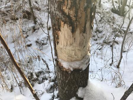 Det här bävergnaget hittade vi på landet, det var det enda trädet vi kunde se som var tuggat på, kan det ha varit en bäver på genomresa? Vi får se till våren om vi har fått en bäverfamilj till granne. Det rinner en å cirka 10 meter från där trädet står.