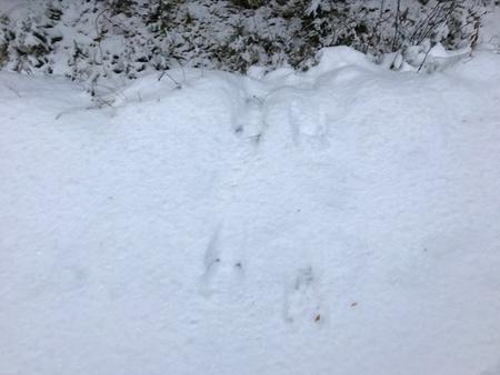 Här har rådjuret smugit över, vi brukar ofta se dem beta på ängarna men inte denna gång och det är kanske inte så konstigt när ängarna blev snötäckta.