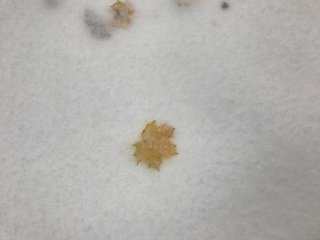 Alla träd har inte tappat sina löv ännu så de kan singla ner med snöflingorna och landa mjukt och skönt i den vita vadden. Snart är det översnöat.
