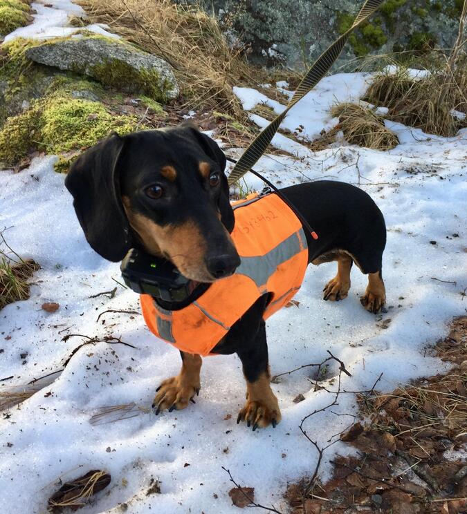 I radion hör jag min sambo Fredrik säga att taxen är släppt, att hon väcker och att hon är på väg i riktning mot mitt pass. Tar ett stadigare tag om min bössa. Lyssnar och nu hör jag Normas ljusa skall. Hon driver, det hörs på skallet. Jag hör hur Normas skall kommer närmre och närmre. Känner pulsen bulta innanför mitt underställ. Är nervös och spanar åt det håll jag hör Normas skall. Nu ser jag rådjuret. Det passerar mitt pass lite längre fram ungefär 60 meter framför mig. Det är för långt för att kunna skjuta med hagel. Bannar mig själv lite. Stod jag inte helt stilla? Hörde rådjuret mig eller står jag inte riktigt där Bertil menade?