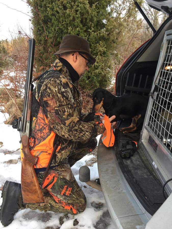 Så här fortsätter dagen. Jag ser rådjuret men det är för långt borta från mig. Bertil däremot skjuter en bock för Norma och taxen blir överlycklig när hon väl får komma fram och lukta. Tänk att det finns så mycket jakt i en så liten hund.