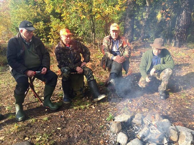 Efter jakten är det dags för sedvanlig grillning och eftersnack. Som afterski men mer afterjakt! Alla plockar fram grillpinnar och korv. Jag tittar mig omkring och tänker att de här männen är så himla snälla och hjälpsamma.