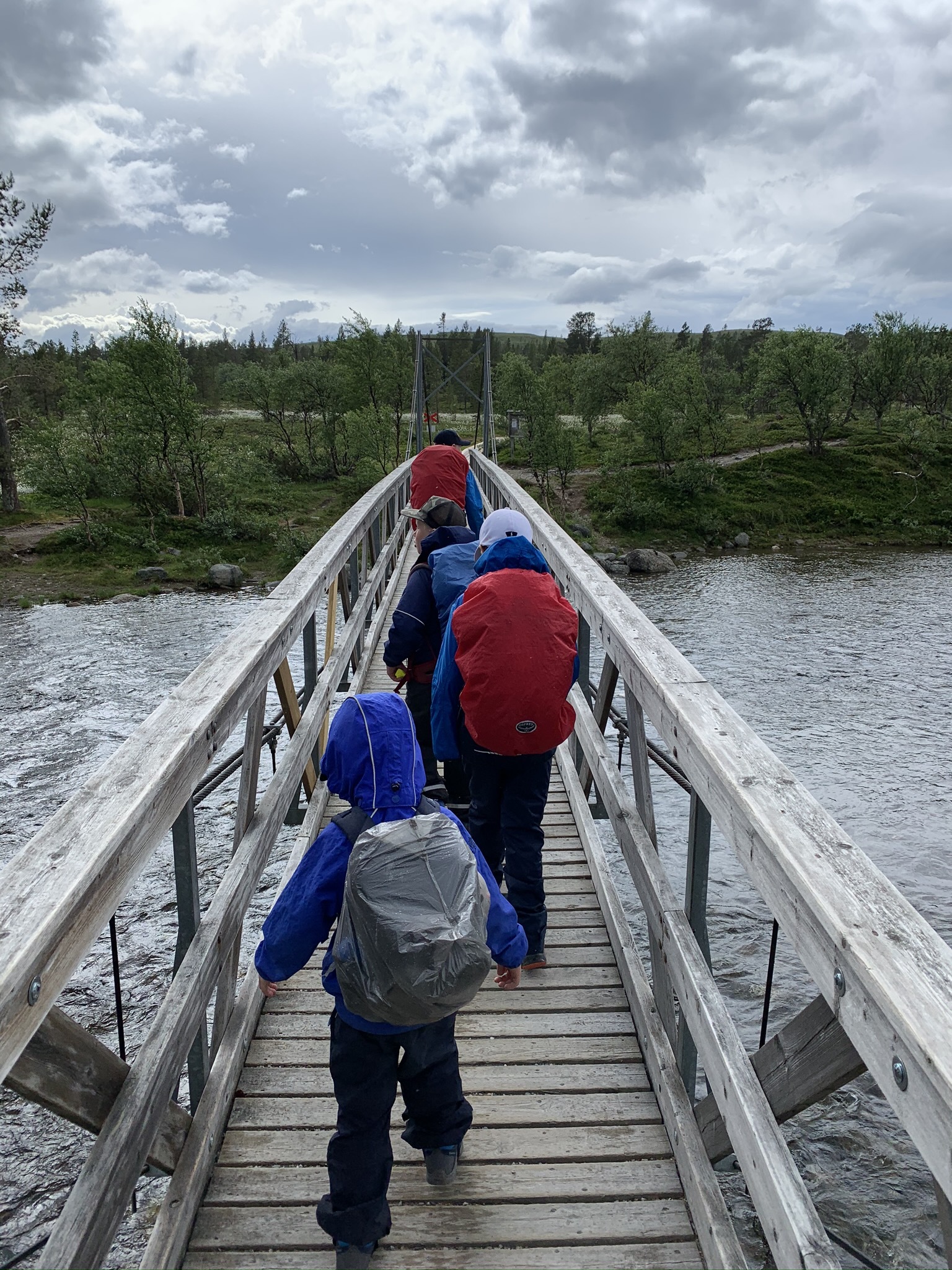 Första bron var både spännande och lite läskig. Barnen diskuterade om man skulle bli jätteblöt eller jättekall om man bara råkade ramla i. Tråkiga mammor förklarade att man hur som helst skulle bli jätteledsen, särskilt mamman som skulle behöva hoppa i efter barnet...