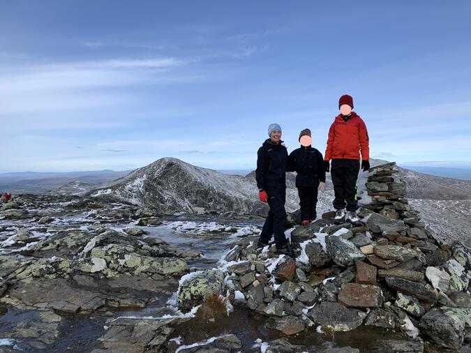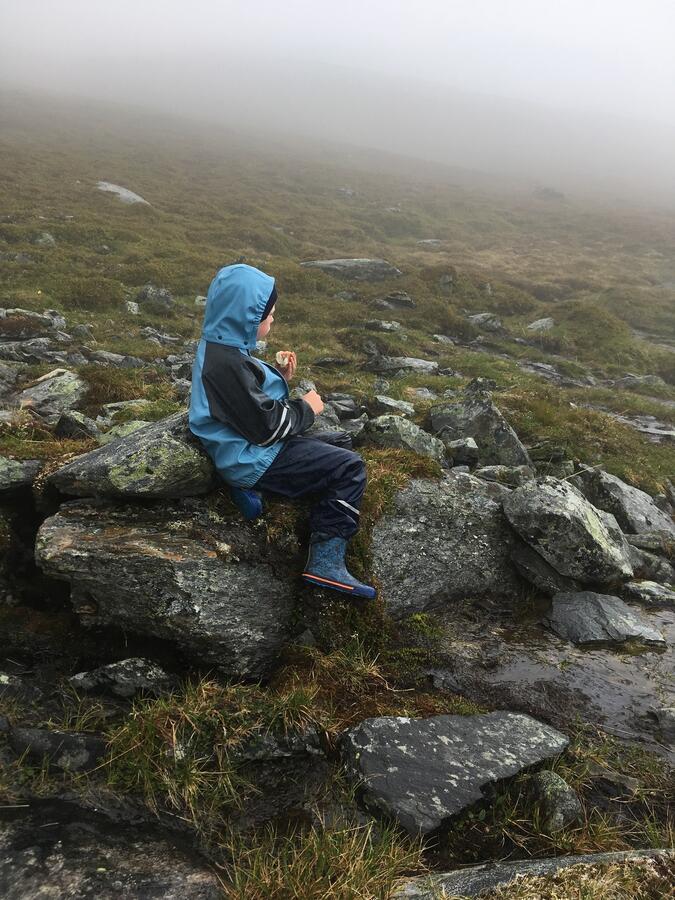 Tack! Jag trodde faktiskt att han skulle bryta ihop men han låg nog så pass mycket humörmässigt plus just då att han hade kunnat fixa vad som helst 😊 Lillasyster fick vi dock muta med choklad för att hon skulle ta sig över till ”den riktiga toppen”, blåsten fick kinderna att bli röda och fötterna ostadiga på de redan hala stenarna...