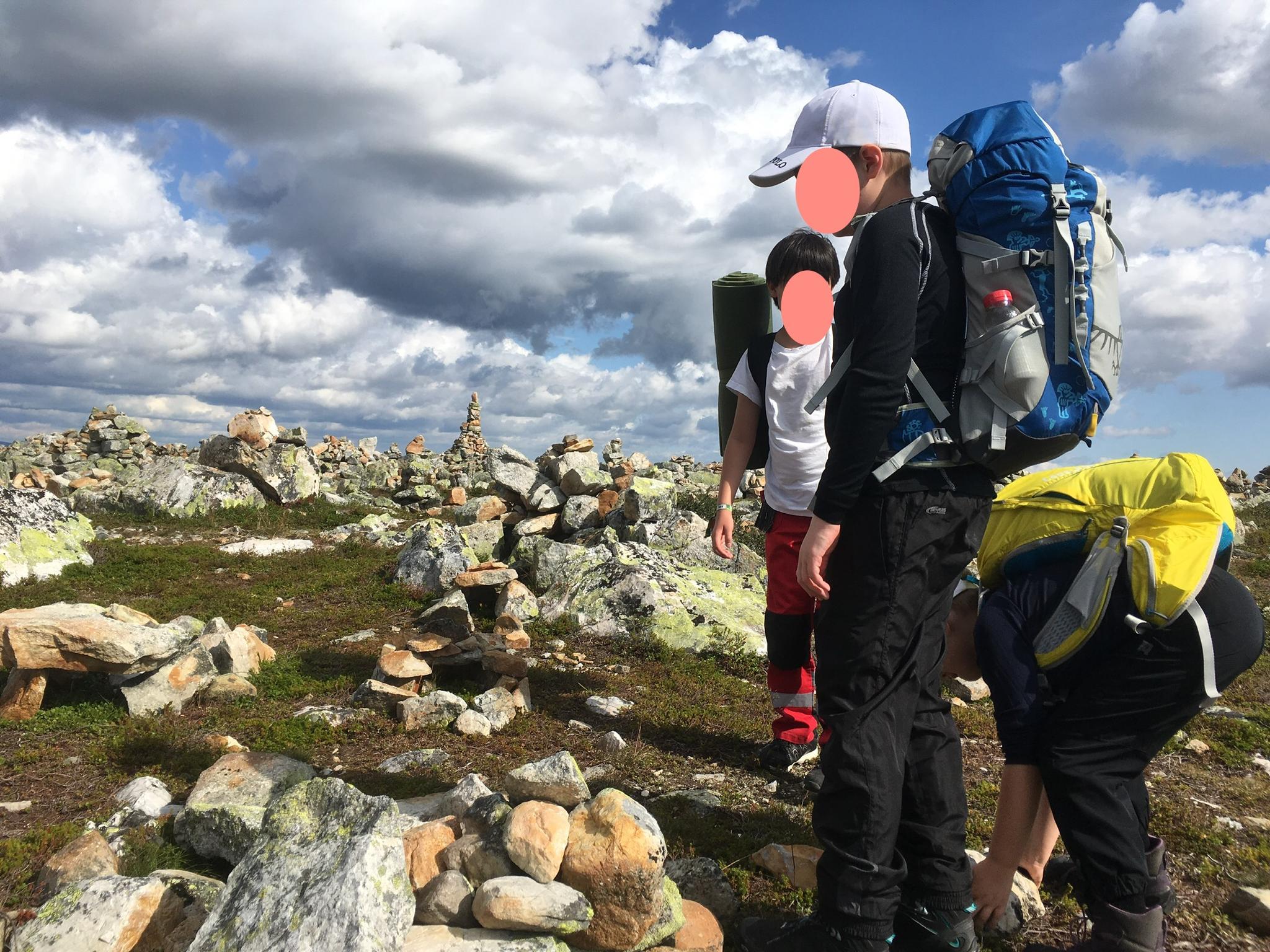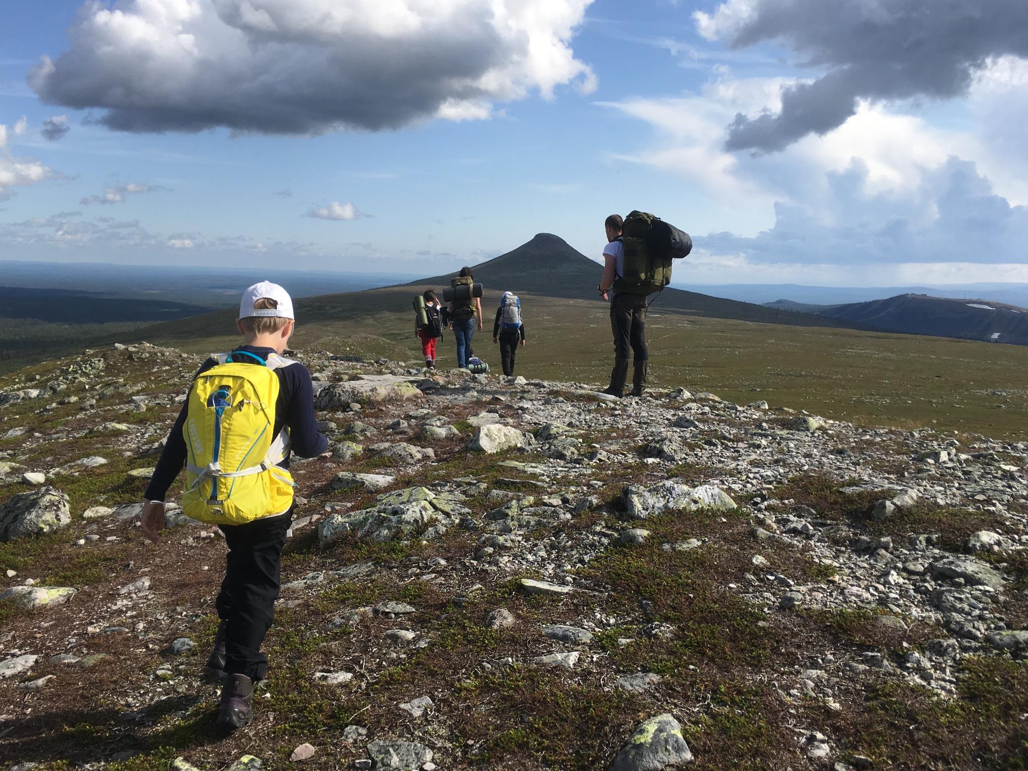 Efter mycket funderande och frågande här på Utsidan så valde vi till slut Städjan för årets fjälläventyr. Vandrat har vi gjort förut men för barnen var det nya att vi skulle sova i tält på fjället. Nytt var också att vi skulle få med kusinerna, som aldrig sovit i tält eller varit i sommarfjällen tidigare. Det var dock tillsammans med deras far/min bror som min egen fjällvandringskarriär tog sin början. För 24 år sedan (jösses...) packade vi ryggsäckarna och gav oss iväg för att vandra från Nikkaloukta till Kvikkjokk, en kanske väl tilltagen sträcka för två nybörjare men ooo så mycket vi lärde oss. Hur som helst, åter till nutiden. Vädret lovade bara regn men eftersom sträckan att vandra inte skulle vara så lång så bestämde vi oss för att åka ändå. Barnen hade fått packa små påsar med blodsockerhöjande att mumsa på och i packningen fanns även gömda ölkorvar och chips att överraska med när behovet skulle uppstå. Väl framme på parkeringen sken solen och det var fem ivriga barn (och två lättade föräldrar) som satte på kängor och ryggsäckar för att påbörja vandringen...
