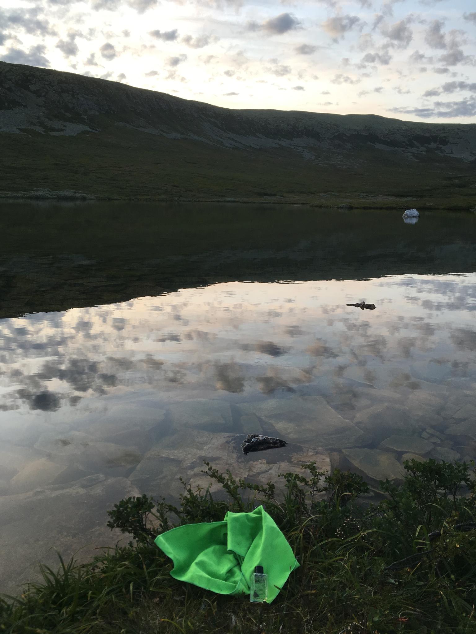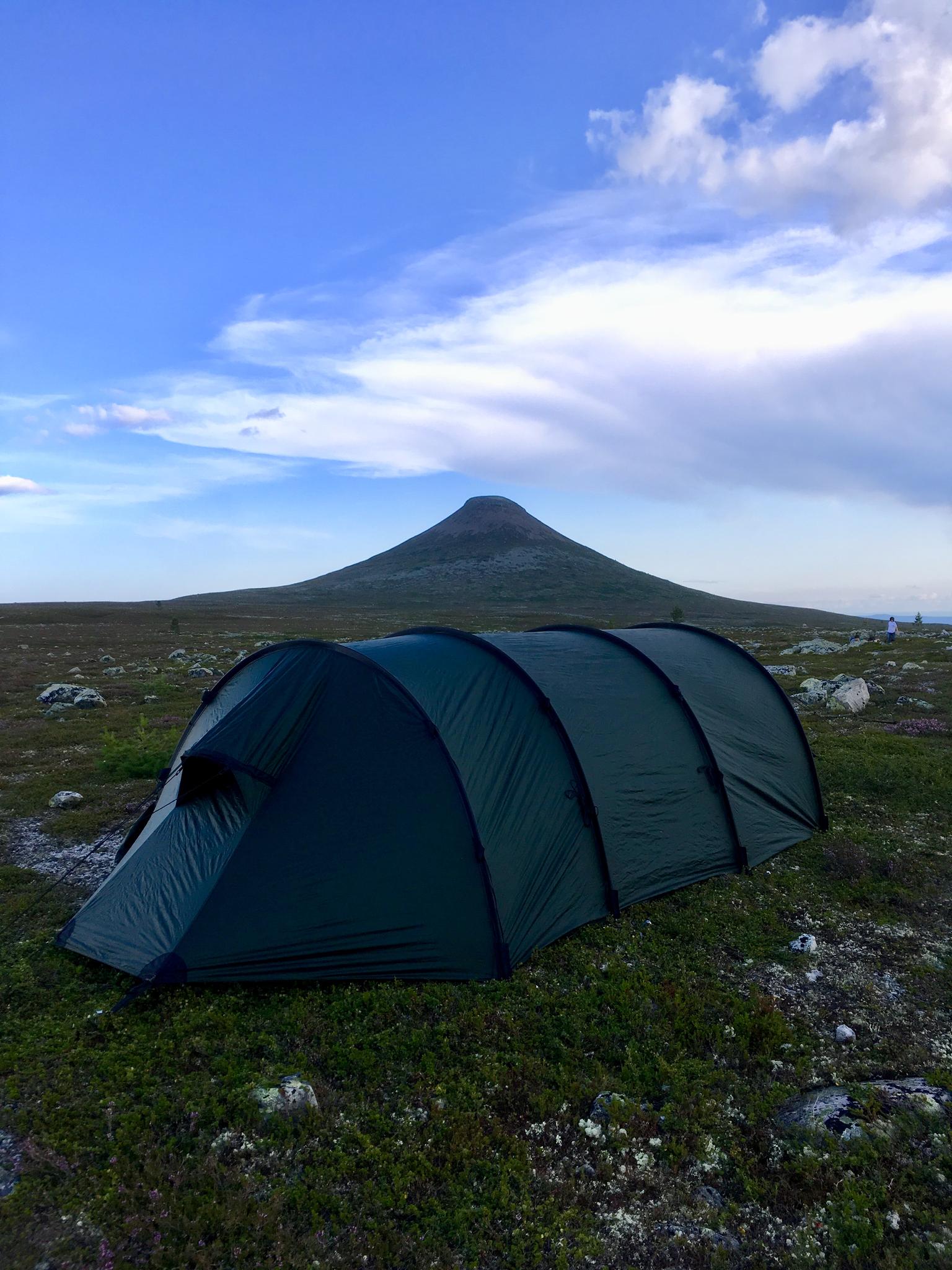 Väderprognosen för morgondagen lovade regn och så såg det ut på himlen också. För att korta sträckan till bilarna så beslöt vi oss för att flytta oss till sjön söder om Nipfjället. Därifrån skulle jag och brorsan kunna gå och hämta bilarna nästa morgon i regnet så att barnen skulle kunna vara hyfsat torra inför nästa etapp av vandringen; ToR Njupeskär.