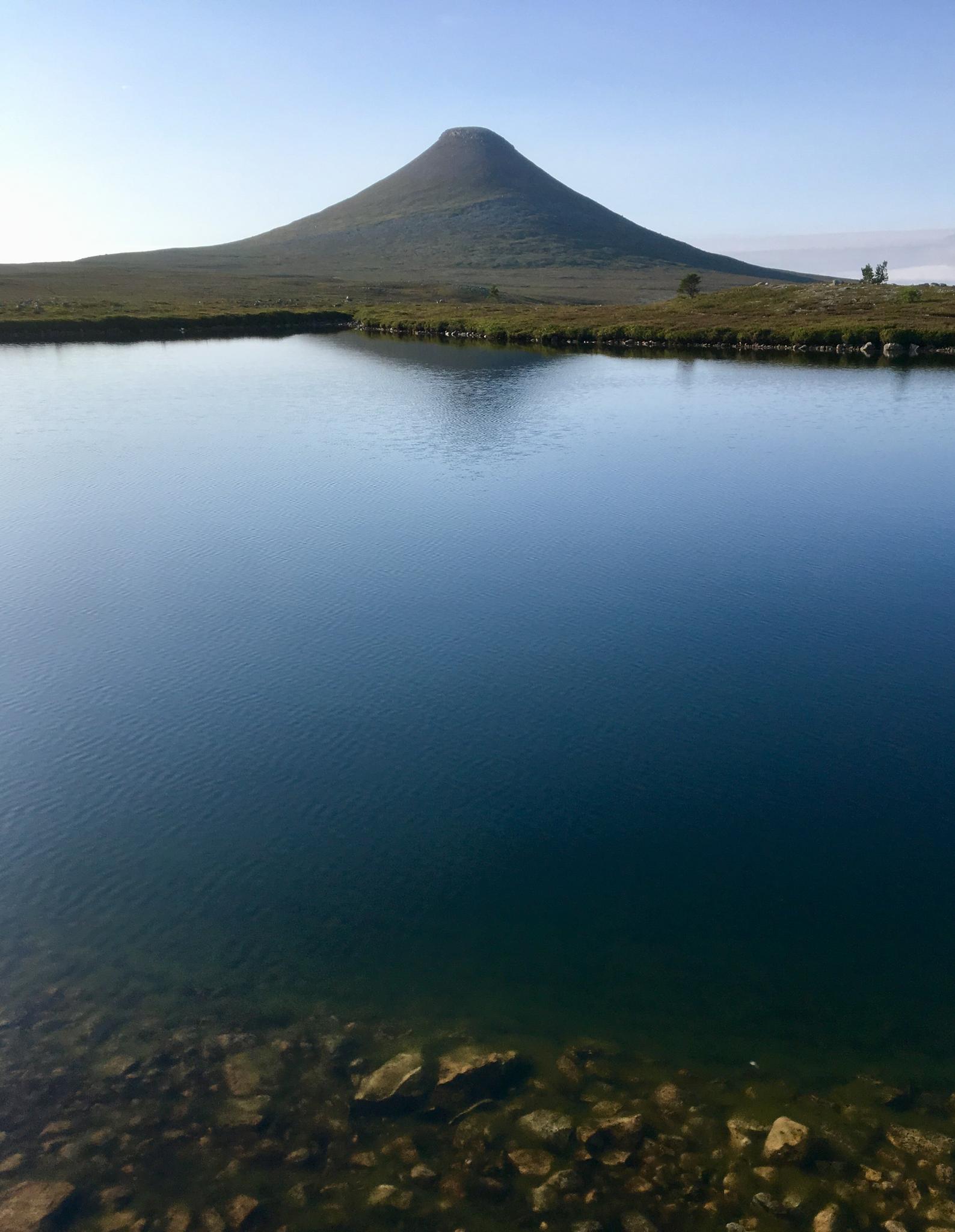 Äldsta kusinen berättade att han läst att de som bodde i området förr i tiden trodde att Städjan var världens högsta berg. Det är lätt att förstå när man tittar på hur det ligger där, helt ensamt och majestätiskt. Dottern tyckte dock att det mer såg ut som en vulkan med molnen kring toppen.