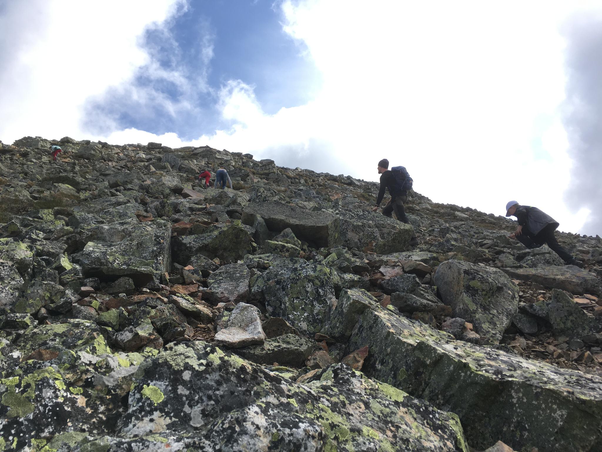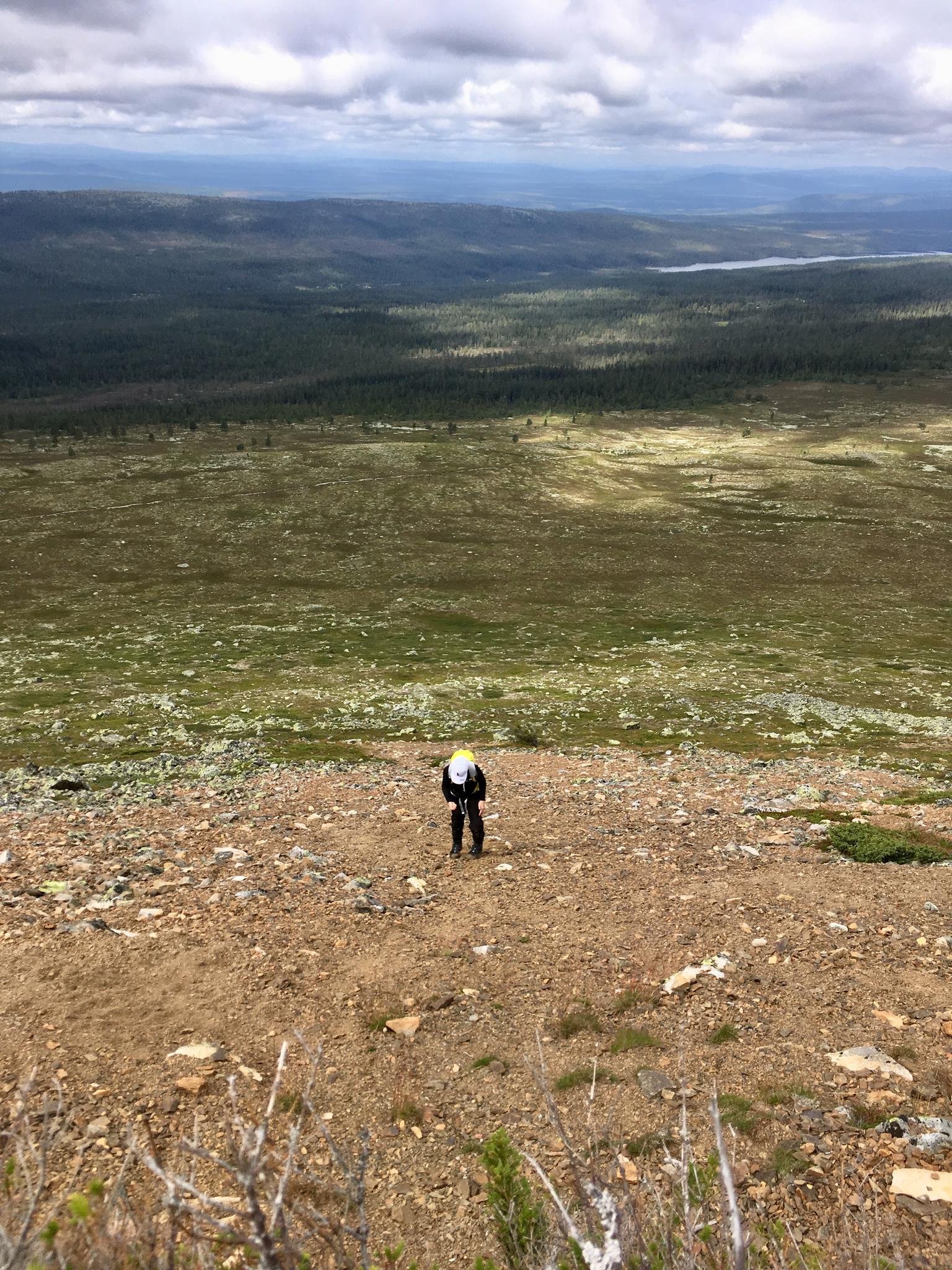 Nästa dag grydde utan minsta tecken till regn! Och inte heller fanns det några mygg! Visst surrade knotten men fastän ingen av oss använde något myggmedel så åkte vi hem med endast fyra bett på sju personer! Med lunch (och regnkläder för säkerhets skull) i ryggsäckarna gav vi oss av. Här skulle det bestigas berg!