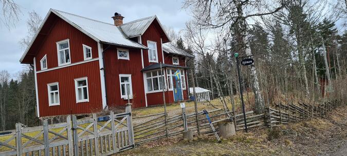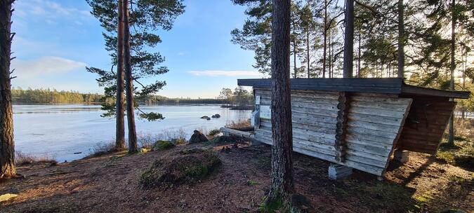 Här finns vedbod med utrustning, utedass samt en välordnad kallkälla 60 meter bort.