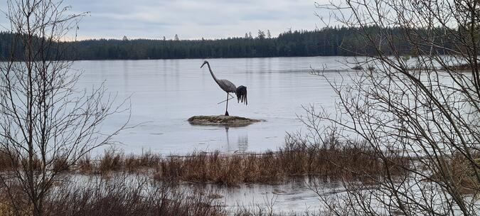 Om man väljer att övernatta i vindskyddet vid Kråksjön kanske en liten ”konstrunda” kan vara en lämplig utflykt. Gå tillbaka till riksvägen och följ den norrut. Efter ett par hundra meter passerar man ett stort klippblock till vänster om vägen. Uppe på blocket sitter Kråksjöhäxan och om man vänder blicken ut mot sjön så ser man den mäktiga Kråksjö-tranan.