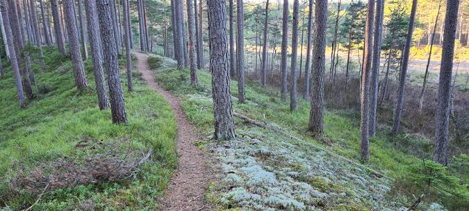 Här börjar den del av Munkastigen som arkeologerna är säkra på är exakt densamma som munkarna använde sig av. Den kommer att föra oss förbi Långsmon och Kråksjön, fram till Grässjön – en sträcka på cirka tio kilometer.